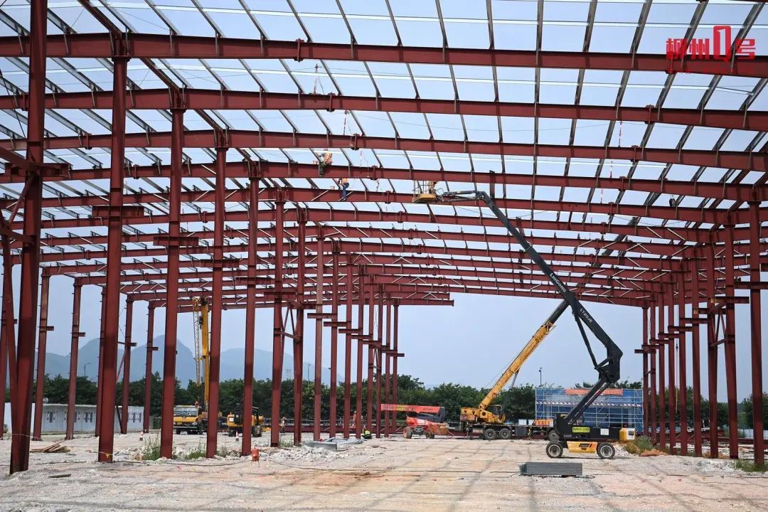 该项目是柳工智能国际工业园配套项目的一部分,主要生产驾驶室、覆盖件等工程机械零部件,满足柳工需求。项目总建筑面积约7.9万平方米,包含零部件厂房、装配和涂装厂房及综合办公区域。目前,200多名工人全力保障施工进度,钢结构主体已完成85%,预计9月下旬厂房主体封顶,11月底竣工验收。